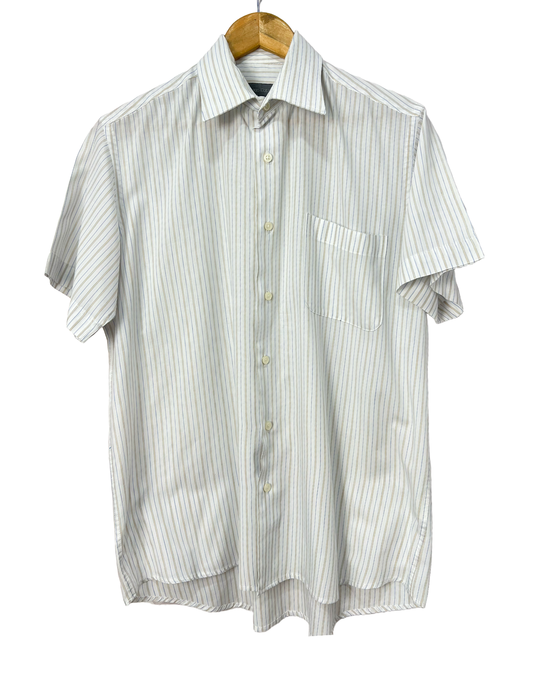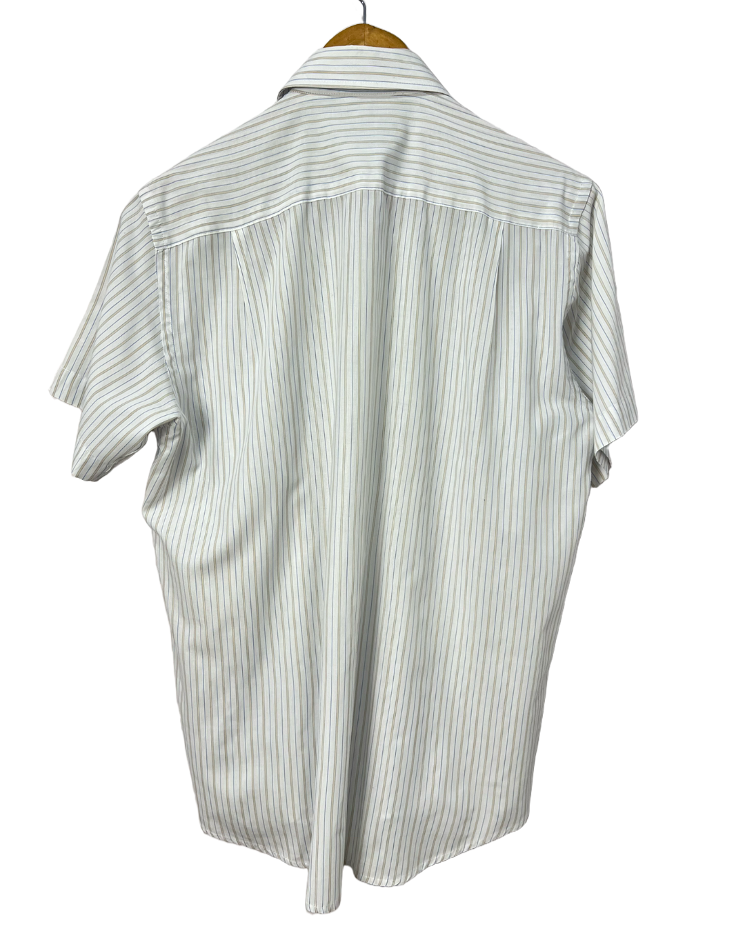 A camisa Emporio Colombo é uma peça masculina estilosa e atemporal, com comprimento de 78 cm e manga de 21 cm, que oferece um caimento moderno e confortável. Seu tecido, composto por 65% poliéster e 35% algodão, combina a resistência e praticidade do poliéster com a suavidade e o conforto do algodão, resultando em uma textura leve e agradável ao toque. Sem avarias e em perfeito estado de reuso, essa camisa é uma escolha versátil e de qualidade para complementar seu guarda-roupa.